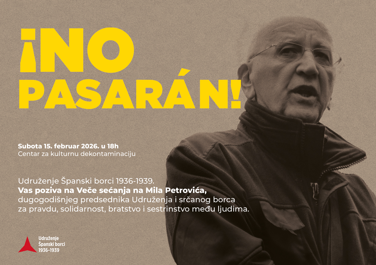 Udruženje „Španski borci“ poziva na veče sećanja na Mila Petrovića, dugogodišnjeg predsednika Udruženja i srčanog borca za pravdu, solidarnost, bratstvo i sestrinstvo među ljudima.